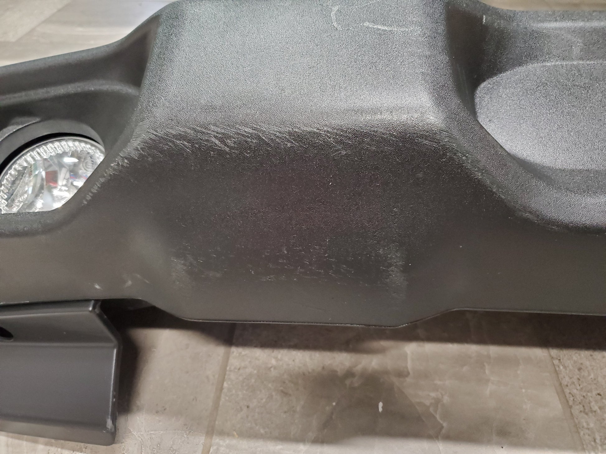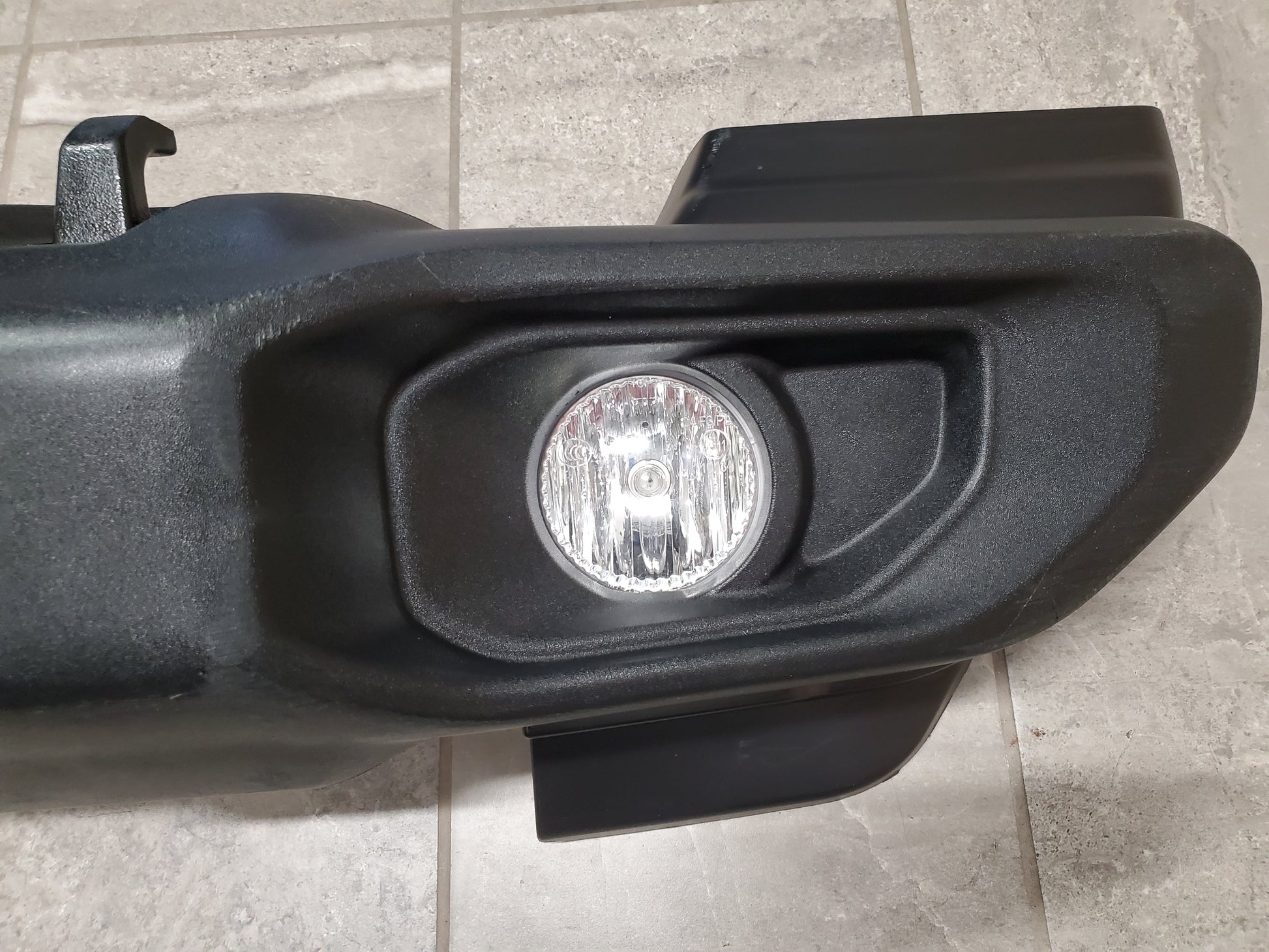 It is in good overall condition. It has some scratches and scuffs as seen in the pictures. It comes with Halogen fog lights.