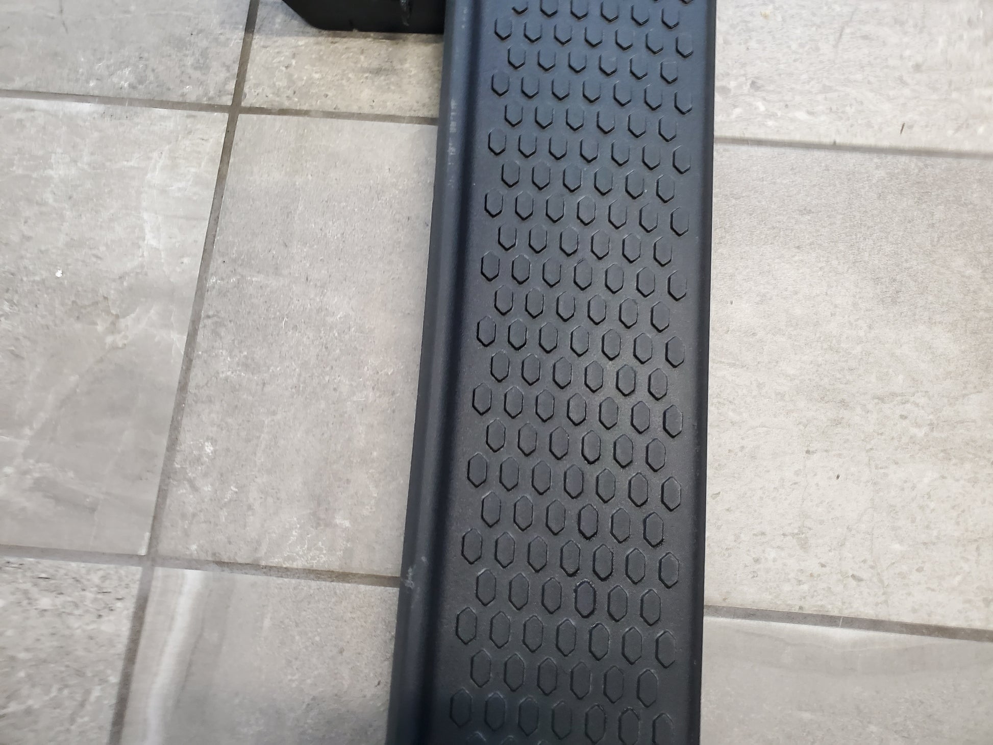 This 2018-2025 Jeep Wrangler JL 4-Door Side Step is in good condition, with no cracks or imperfections, except for the minor scratches and scuffs visible in the pictures.