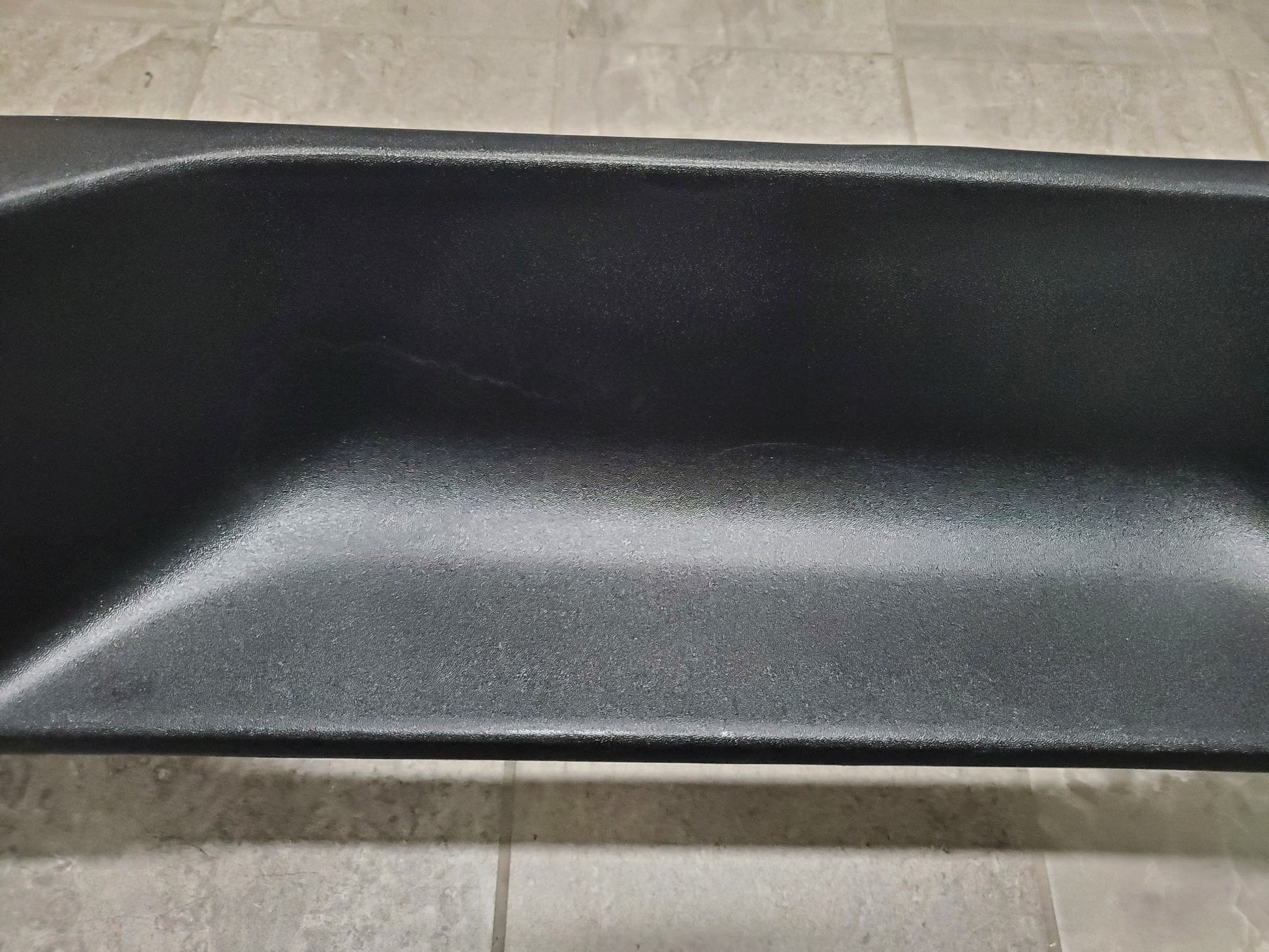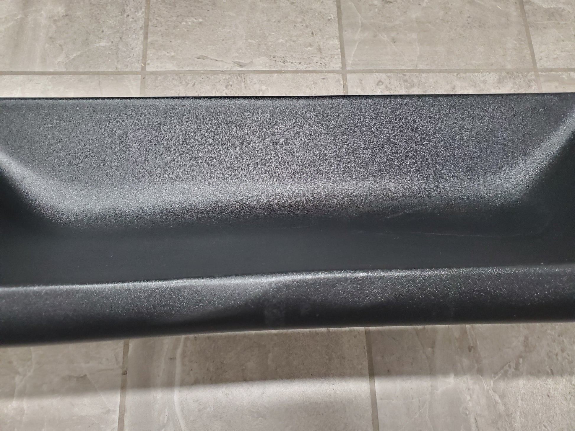 This rear bumper is in good overall condition. However, it has some scratches and scuffs here and there as well as a small imperfection on the upper left side as seen in the pictures.