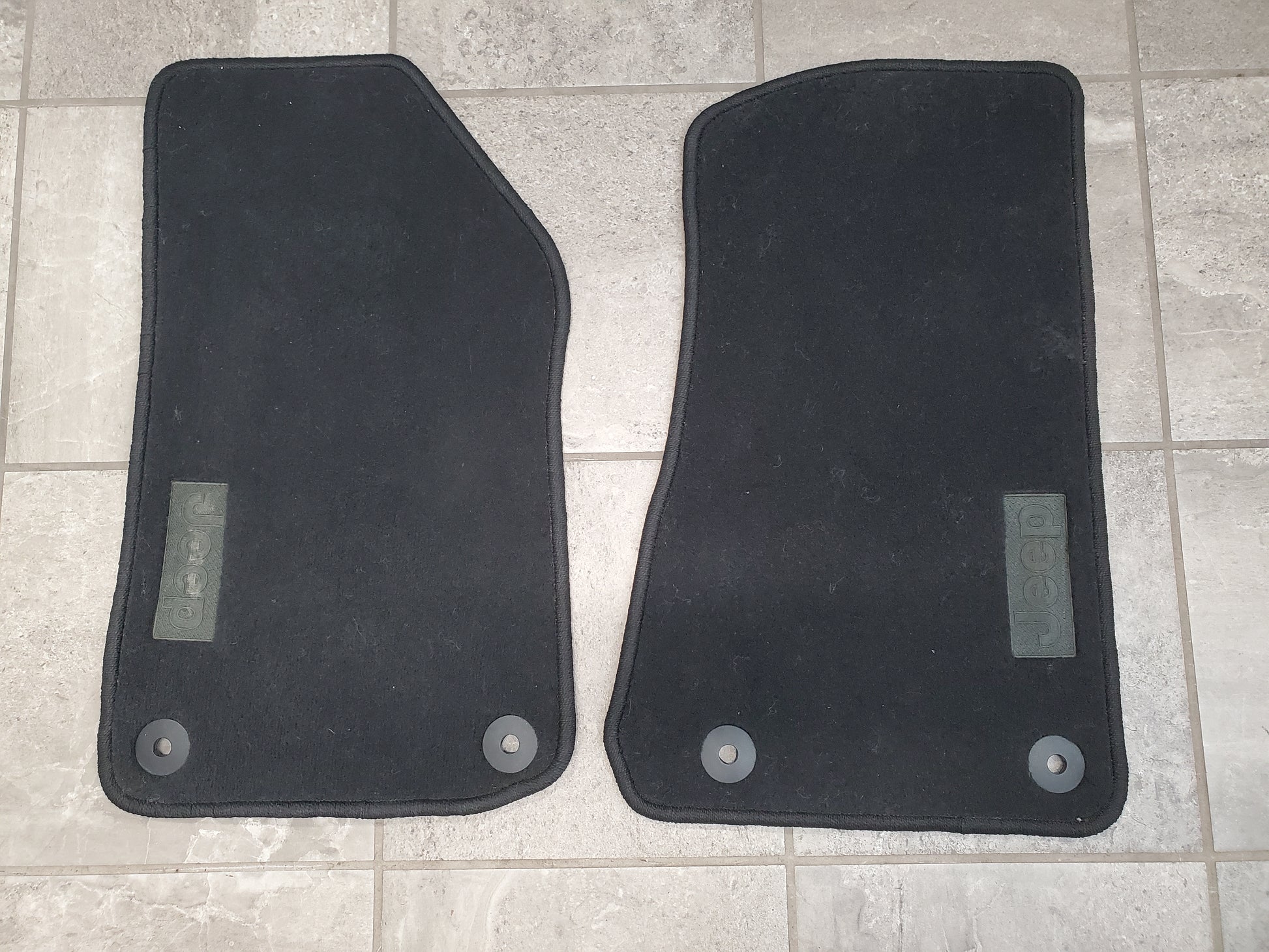 These 2021-2025 Jeep Wrangler JL 4Xe Front Floor Mats are in good overall condition as seen in the pictures of the actual mats available.